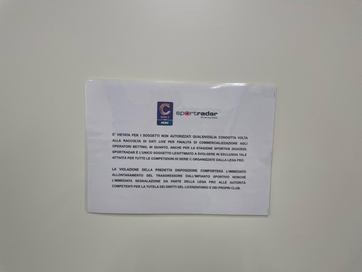 Een Sportradar-bericht over gegevensverzameling in een Serie C-stadion